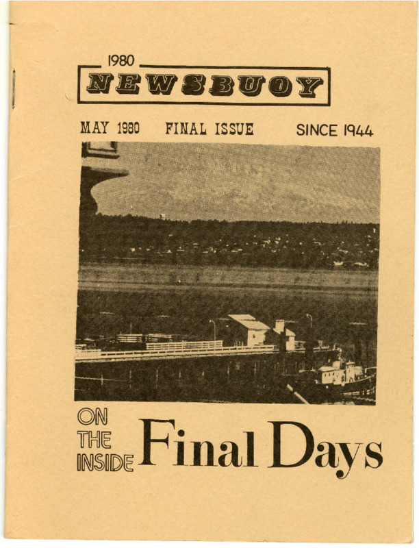 Newbuoy - May 1980News magazine of the McNeil Island Federal Penitentiary. This issue is dated May 1980 and labeled as the final issue. This issue contains editorials on leaving for a halfway house in Portland; historic photos of the island, prison, and Steilacoom; poetry; story on the final graduation ceremony of TCC, University of Puget Sound, and Pacific Lutheran University students, with graduate lists and degrees; story on the 15th anniversary of the dedication of the island's Mt Tahoma Chapel; editorial on prison reform; comics; a history of McNeil entitled 'Prison Without Walls, 1875 to 1980,' with historic photos; map of McNeil Island with wildlife information. Staff credits: published by the United State Federal Prison Camp on McNeil Island under supervision of the US Bureau of Prisons. Newsbuoy staff: editor-in-chief Jim L. Persons; executive editor Wally Watkins; managing editor Bob Burnett; sports editor Dwight Jurgens; associate editor Ron Lyman; photographer John Kochli; chief printer James Short.