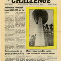 This issue contains stories on the campus asbestos removal project; smoking on campus; new (or newly full time) faculty members Gael Tower, Cynthia Alston, Ray Kendall, Linda Duchin, John Kinerk, Jonnie Davis, Pam Lee, Sharon McGavick; a resolution by State Board staff urging the community colleges to adopt AIDS policies; a reported assault on campus; a presentation on Japanese dance theatre by Tamagawa University visiting instructor Tadashi Koyama; older TCC students; the Drama Department and benefits of drama classes for all students; a trip by the Puget Sound Music Society Concert Band to Victoria BC; Sierra Club representative Bruce Wishart visiting the Journalism 101 class; the soccer and volleyball teams; student athletes and TCC athletics.