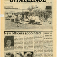 This issue contains stories on newly elected student government officers; State Board for Community College Education chair Philip S. Hayes being selected as commencement speaker; the upcoming 1988 Tacoma Writers Conference; changes to tax laws for students; the spring study abroad program in London; a faculty inside joke regarding xerox machines and medieval scribes; student and violist Charles Noble and his recent acceptance to the National Orchestral Institute; arts chair and instructor Frank Dippolito; the end of the women's tennis season; the men's baseball team; an upcoming 'Salute to Broadway' performance by TCC's 'On Stage Show Group'; Challenge staff being recognized by the Board of Trustees for their recent awards; teaching children to say 'no'.