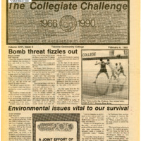 This issue contains stories on a bomb threat to campus; the Environment 2010 workshop and public advisory meeting at Fircrest Methodist Church; the student senate meeting, including discussion of campus accessibility, creation of a committee to deal with campus racism; a recent AIDS information workshop; an electrical issue in Building 19; a recent break-in to the cafeteria; installation of condom machines on campus; the Plaza Hall Drug and Rehabilitation Center and TCC Human Services Program staff and interns; an upcoming lecture by Susan Mitchell on 'Touring the Land of the Incas'; a stress management seminar; the men's basketball team loss to Grays Harbor; men's and women's basketball team members leading scoring in the division; women's basketball team loss to Grays Harbor; the new campus phone system; the absence of performing arts groups on campus during Gwen Overland's doctoral research leave; early Black history; African religions.