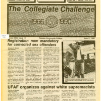 This issue contains stories on a new state law requiring sex offender registration with local law enforcement; the United Front Against Fascism (UFAF) organizing against white supremacy hate groups; the TCC greenhouse plant sale; financial aid scams; the potential of television to distort information; oppression; lighting in Tacoma parks and safety issues; students protesting the student government election system; the newly remodeled and reopened Tacoma Public Library main library branch; the Speed and Accuracy Typing class; Foundation events coordinator Robin Popich and the Tacoma Wine Festival; students Larry Foster and Bonnie Foote being named athletes of the year; the golf team winning the state golf tournament; Students Organized for Accessible Resources (SOAR) meeting with an architect regarding Building 18 improvements; traveling in Panama, with numerous photos; Washington Correctional Center for Women inmate Yvonne Wood; new course 'Literature of the New South Africa'; the impact of credit on job seeking; the Audubon Society; graduation; ending apathy; a conversation with Columbia University graduate Elias Lizardo of Honduras; planned renovations for Fort Nisqually.